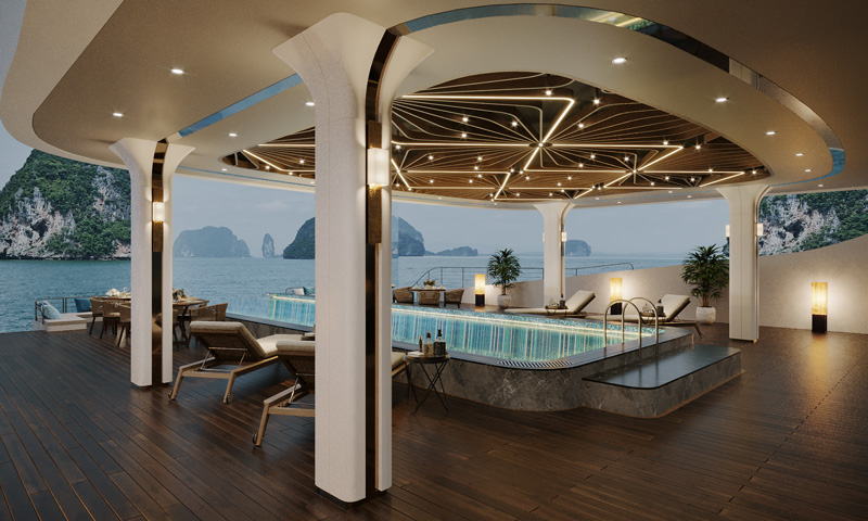 luxurious cruises in Ha Long Bay, Calista is built