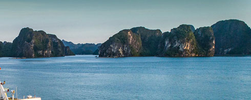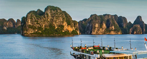 enjoying the wonderful natural scenery of Ha Long Bay. A
