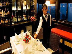 a bar, gourmet restaurant, outside dining area, sundeck.