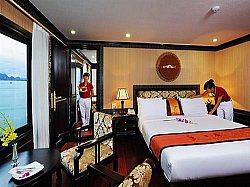 Halong and features exquisitely decorated cabins and