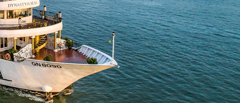 enjoying the wonderful natural scenery of Ha Long Bay. A